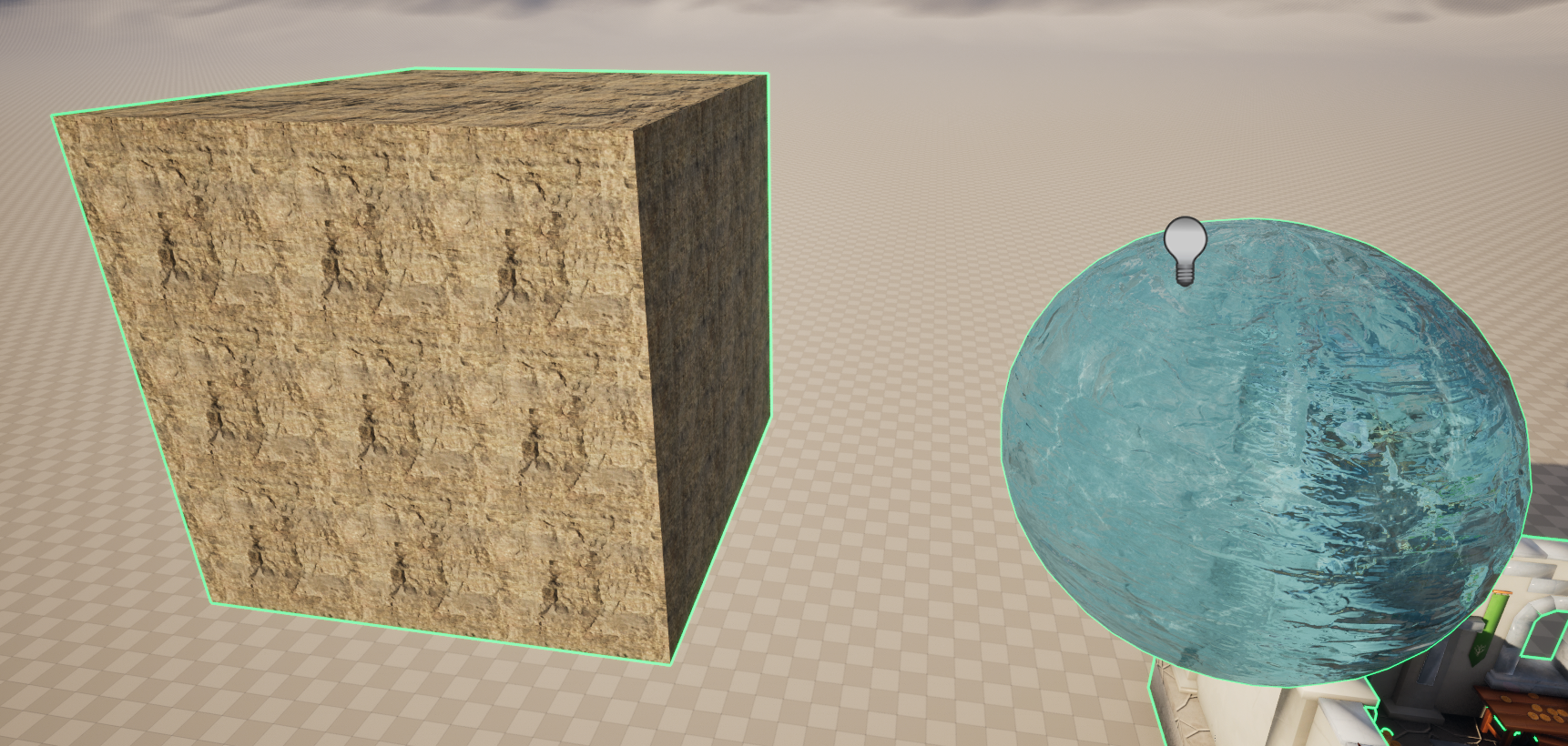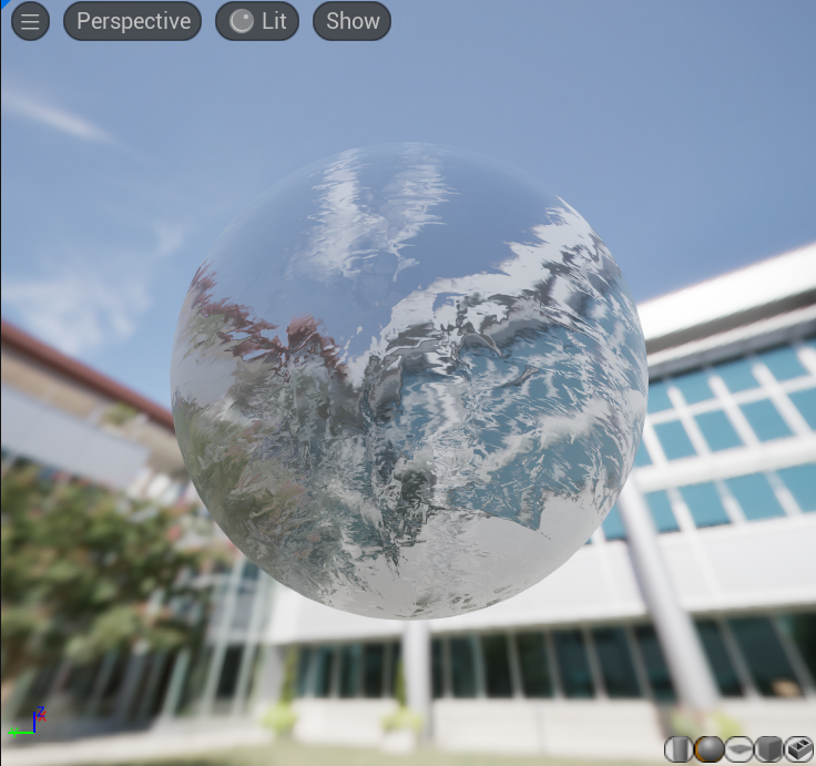 接下来是Blend Mode中的Translucent材质,看了开头的管线说明,就知道虚幻5默认的管线是没有任何“真实”光追效果的,包括折射、镜面反射、自发光等等,所有的这些都还是传统管线的近似模拟,只不过虚幻5属于这些方法的集大成者,有时候效果都让人误以为是光追。所以制作材质时要注意这一点,很多时候与其他3D软件里常用的离线渲染器不同,例如这里的冰块材质,一般使用一些小技巧来模拟折射