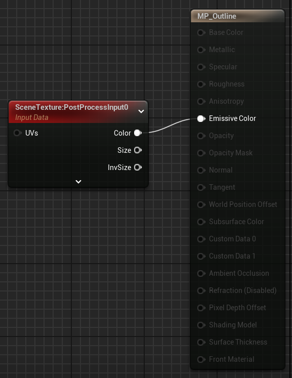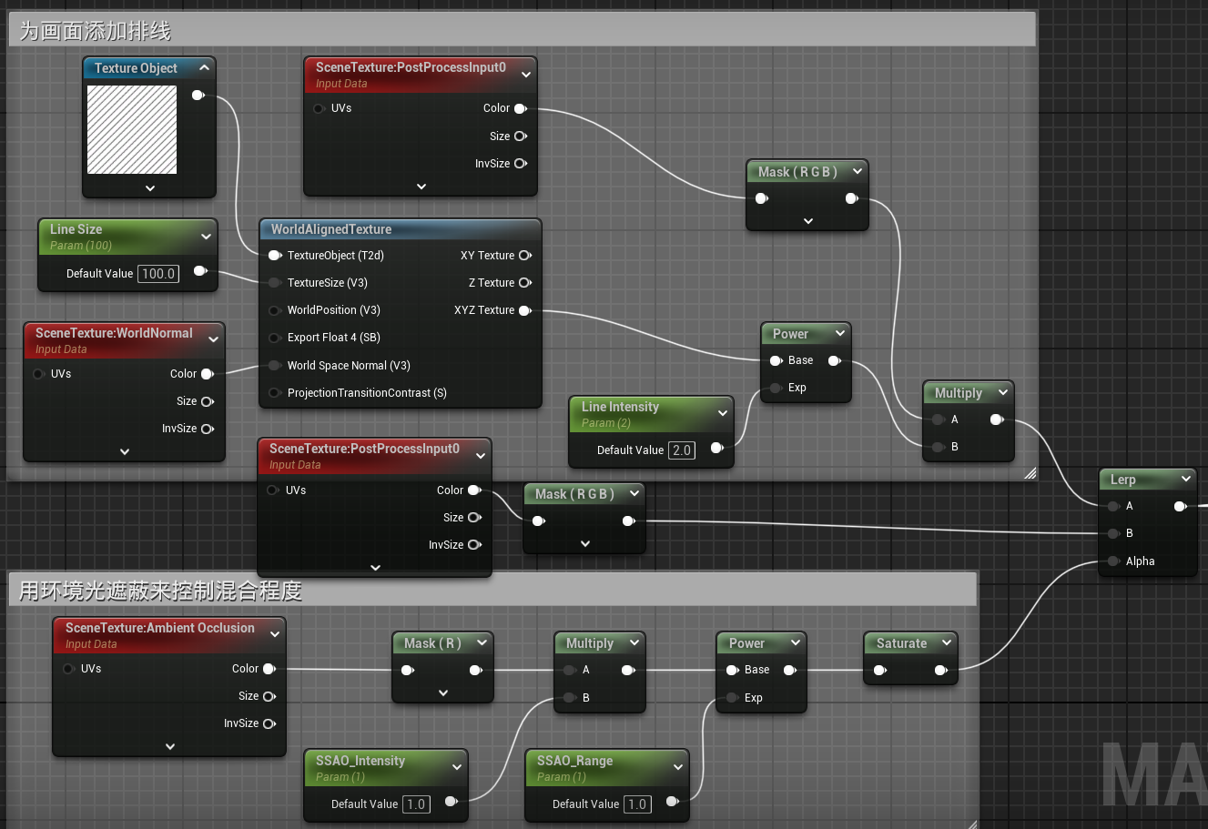 最后再提一下"SceneTexture"这个节点以及其对应代码中的"SceneTextureLookup"函数,在后处理材质中,至少拖入一个SceneTexture节点以防止编译报错(即使你不用):