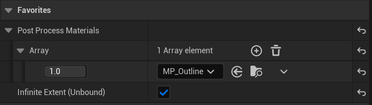 材质就创建完成了,随后在场景中使用它,在快速添加中找到"Volumes->Post Process Volume",修改其属性: