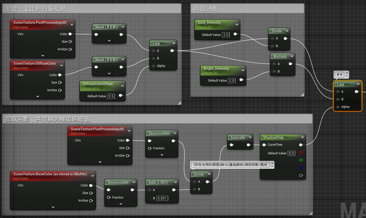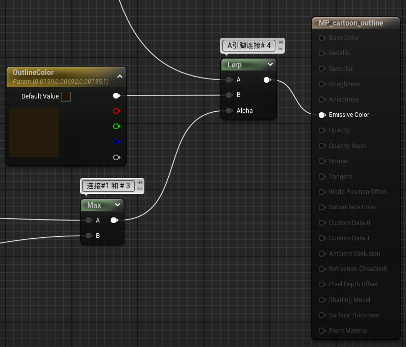 return lerp(SceneColor, OutlineColor, edge);后处理材质-风格化(卡通):