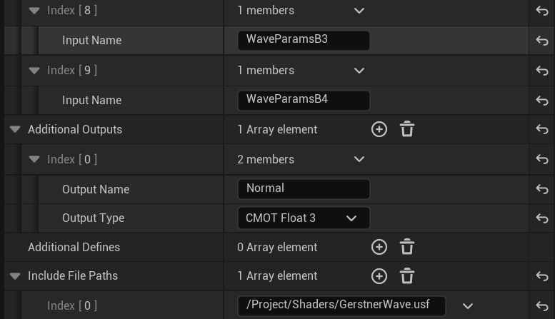 // ...重新编译项目,然后在工程目录下创建Shaders文件夹,里面就可以放自定义的着色器文件了,例如GerstnerWave.usf: