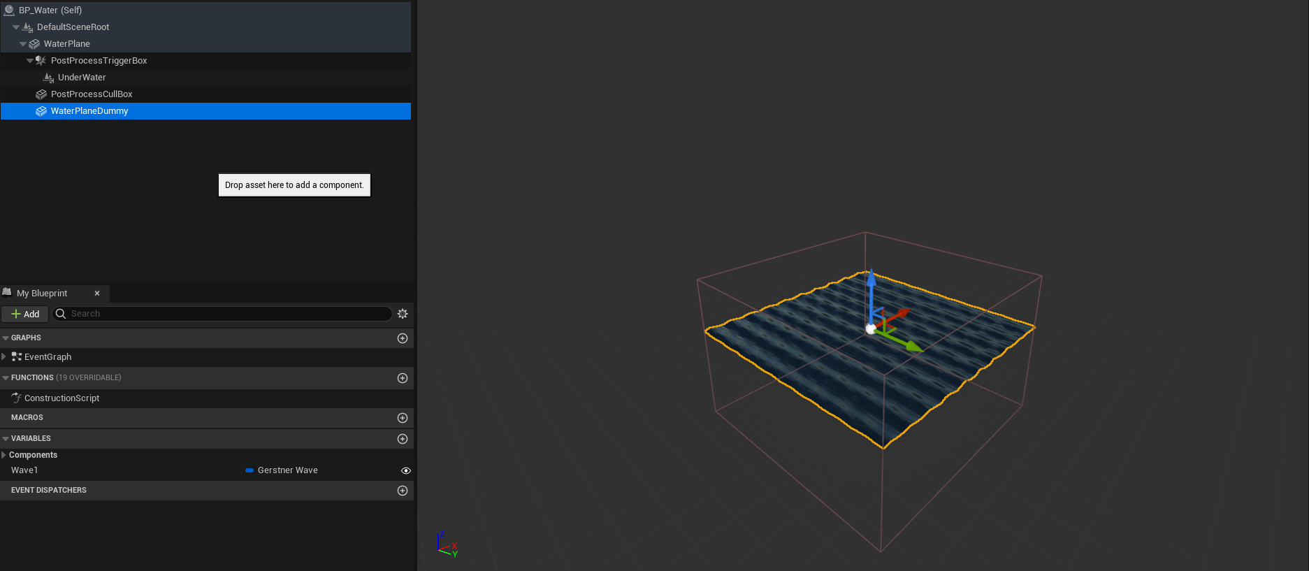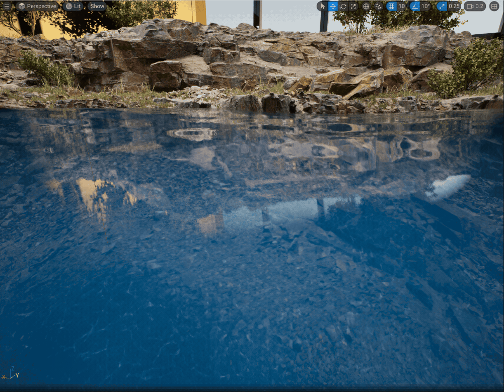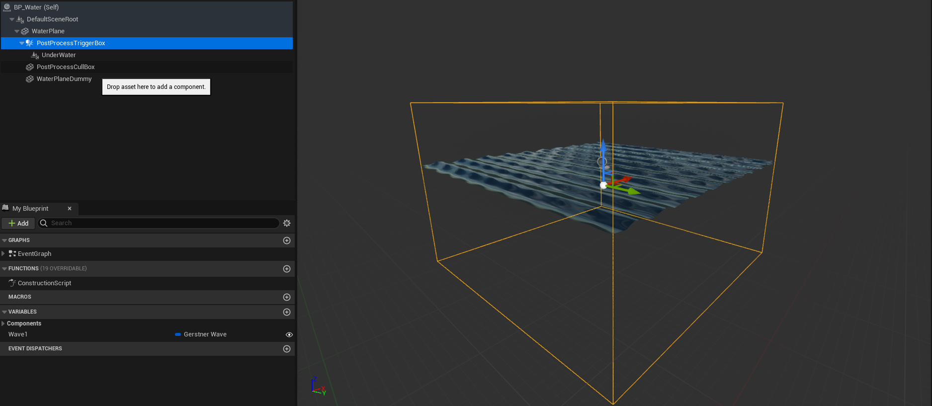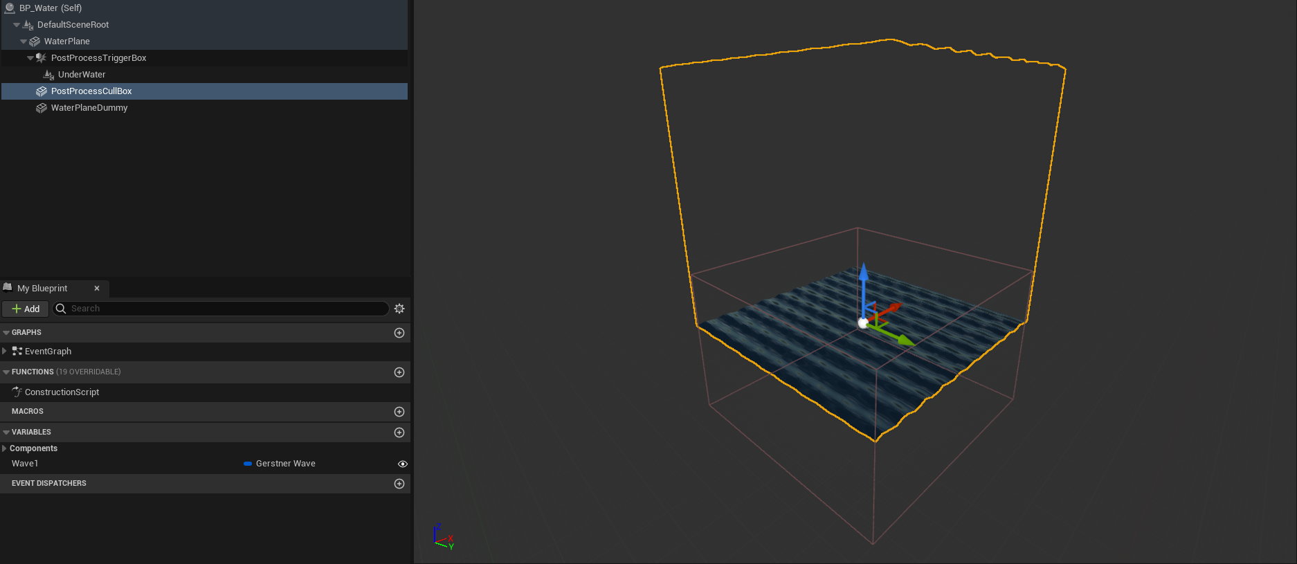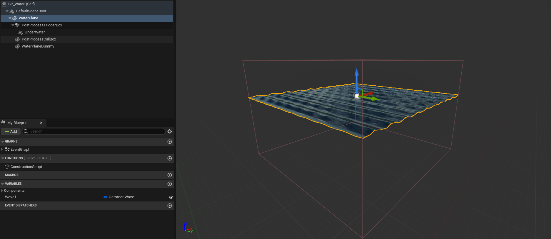 接下来的例子,尝试创建一个动态的水体系统,包括四大部分:水面材质,水下后处理材质,近岸浪花,船体交互。涉及到 子系统(Subsystem),材质参数集(MPC),自定义模板等等内容